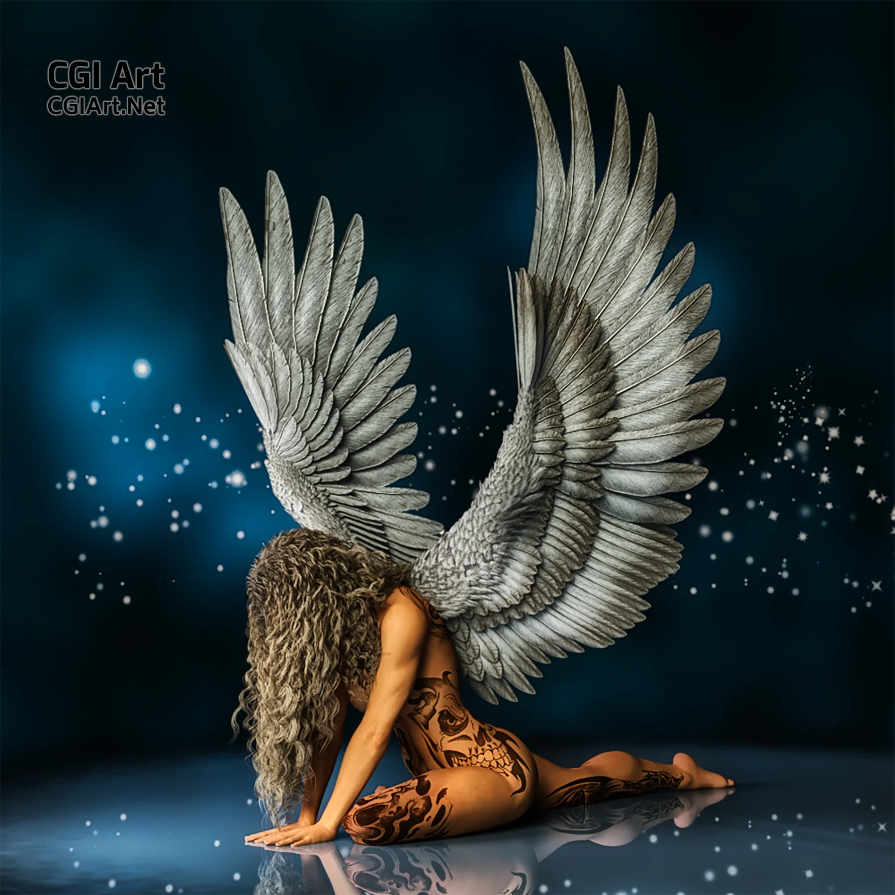 A lost angel, with her head lowered in shame, begs for forgiveness on judgement day.
